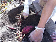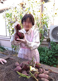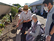 喜福園の菜園へ、芋ほりに行きました。たくさんのおいしそうなサツマイモを収穫できました。帰り道、「芋ほりなんて久しぶりだったわ。おもしろかった」とおっしゃっていました。