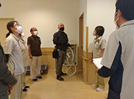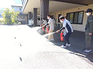 消火器、ホースの場所、使い方を再度確認しました。また、夜間帯の火災発生時にはどこにどう避難するか、職員同士で確認しました。